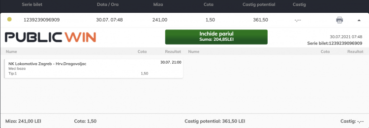 Diferența de valoare și de experiență pe prima scenă este evidentă. Lokomotiva Zagreb și-a propus să atace cupele europene la finalul acestui sezon, așa că punctele contra unei nou-promovate sunt obligatorii. Pe PublicWin, cota pentru victoria celor de la Lokomotiva Zagreb este @1.50 și o voi juca la PARIUL 3 din seria ALL-IN la această casă de pariuri cu tot câștigul obținut ieri.