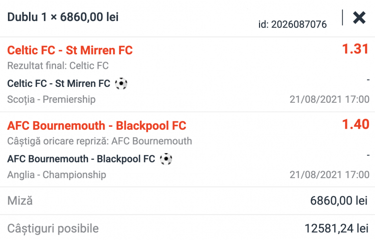 Biletul Zilei format din 2 meciuri la cota 1.83
