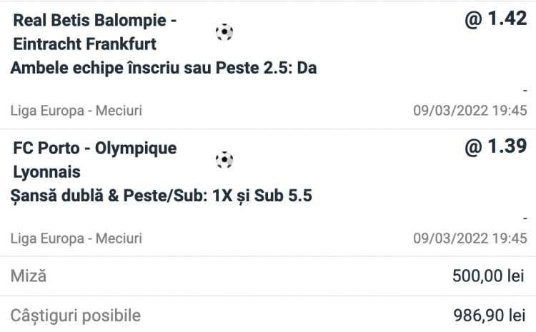 Biletul Zilei format din 2 meciuri la cota 1.97
